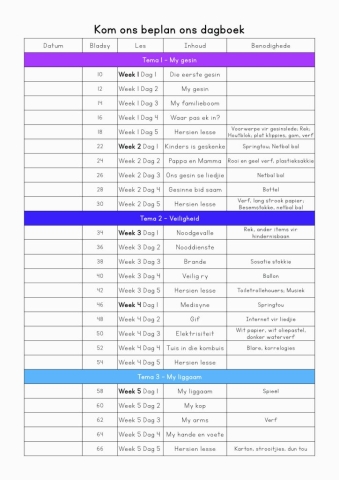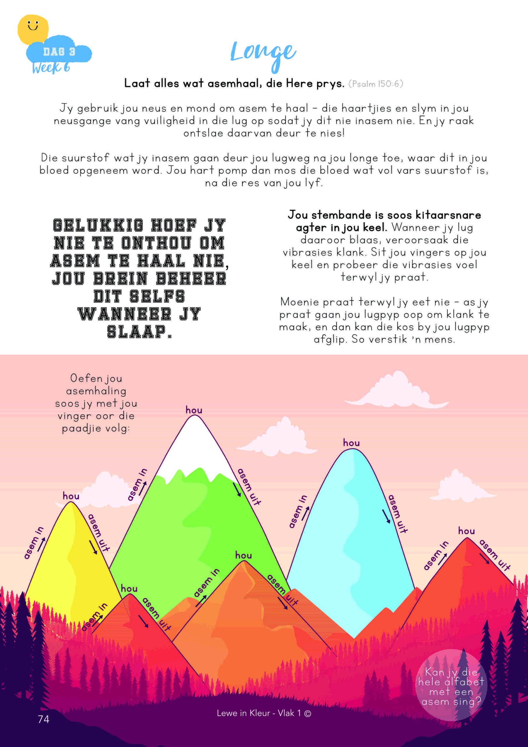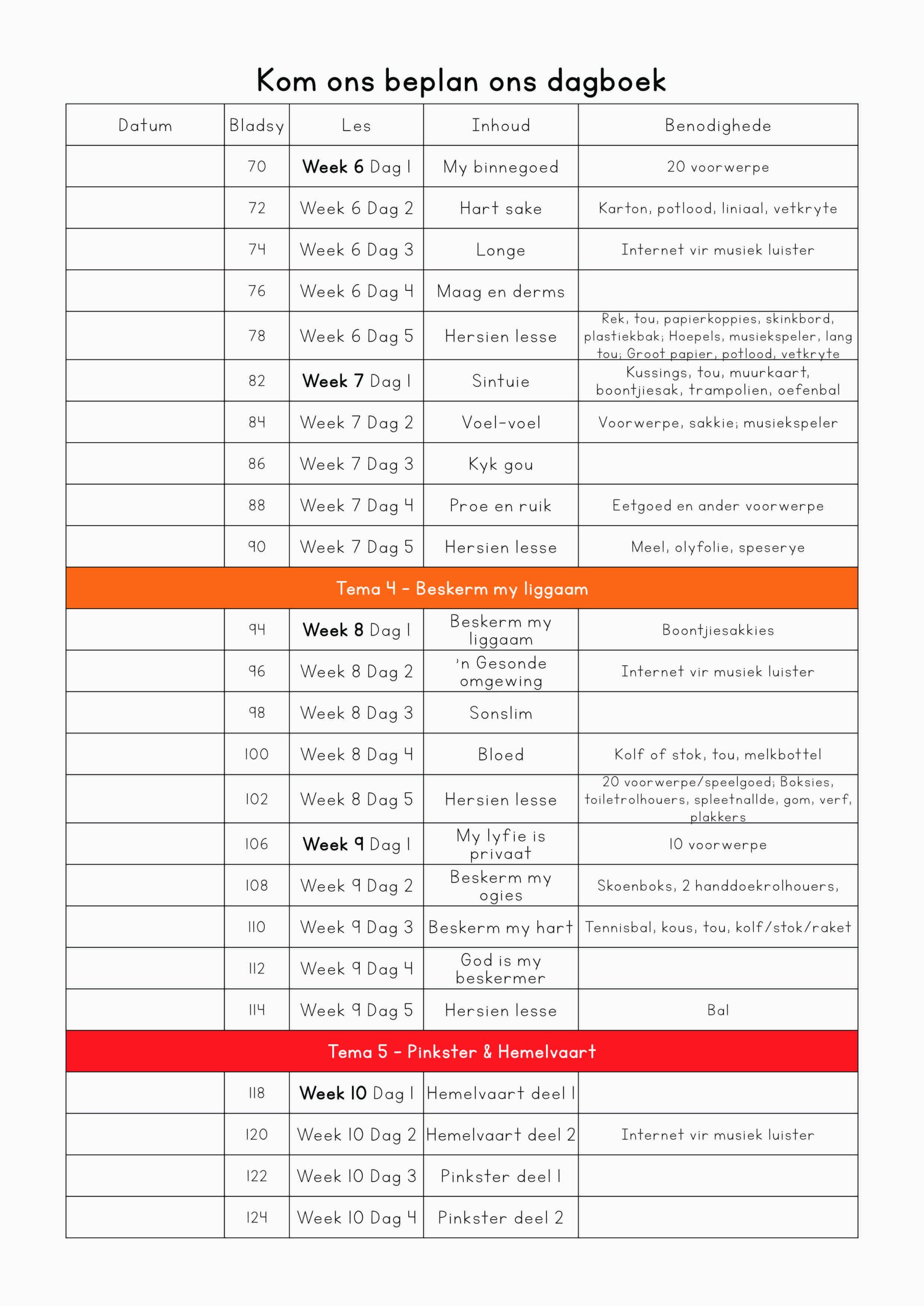 Daar is ‘n les vir elke dag, vir 10 weke, en is geskik vir 6-8 jariges.