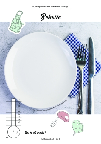 Neem jou 8-12 jarige op ‘n 300-bladsy reis deur Suid-Afrika se provinsies, met blootstelling aan geografie en kultuur, en heerlike Suid-Afrikaanse disse om te maak.