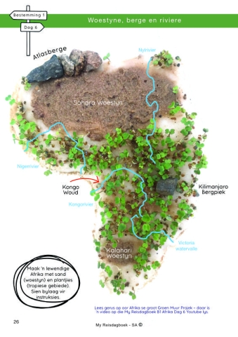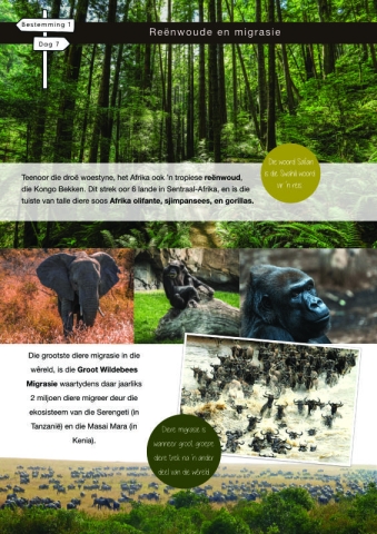 Daar is 3 lesse per week, en 36 weke in totaal. Lees deur die dag se lesinhoud en plak dan die gepaste plakkers uit jou plakkerstel, op die kaart van die bestemming (aan die begin van die hoofstuk).